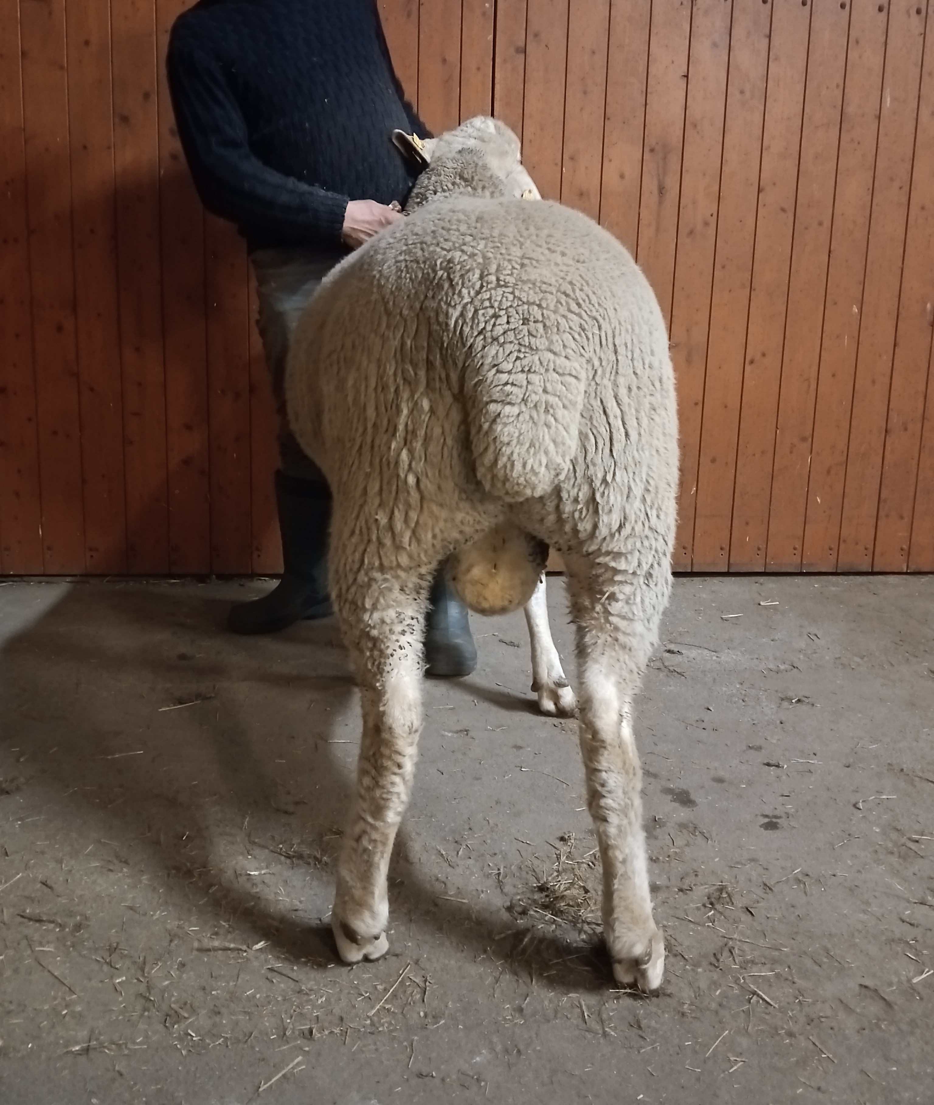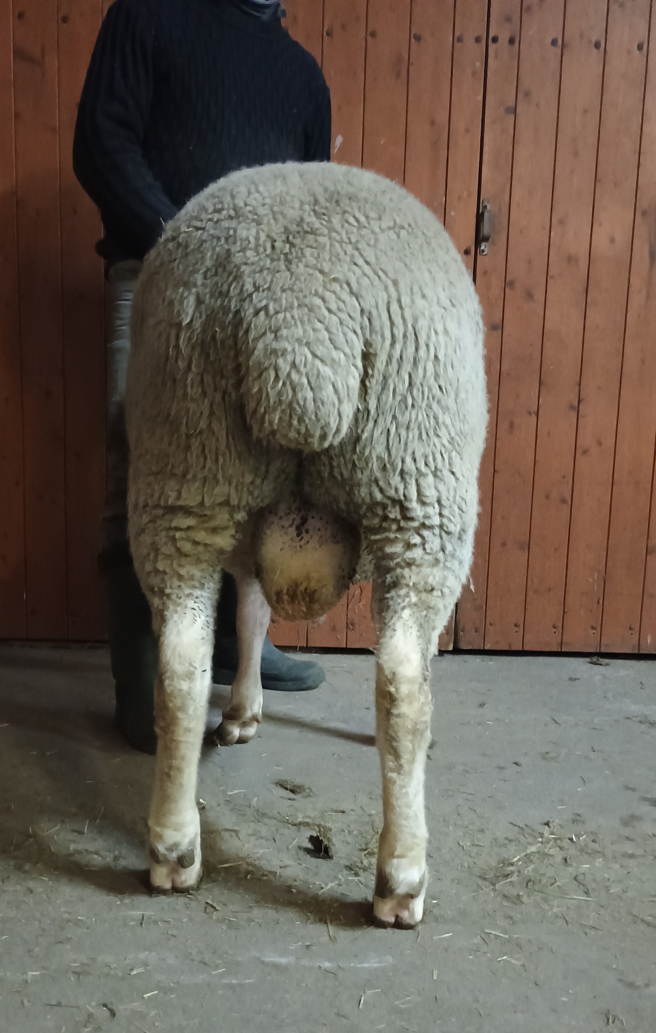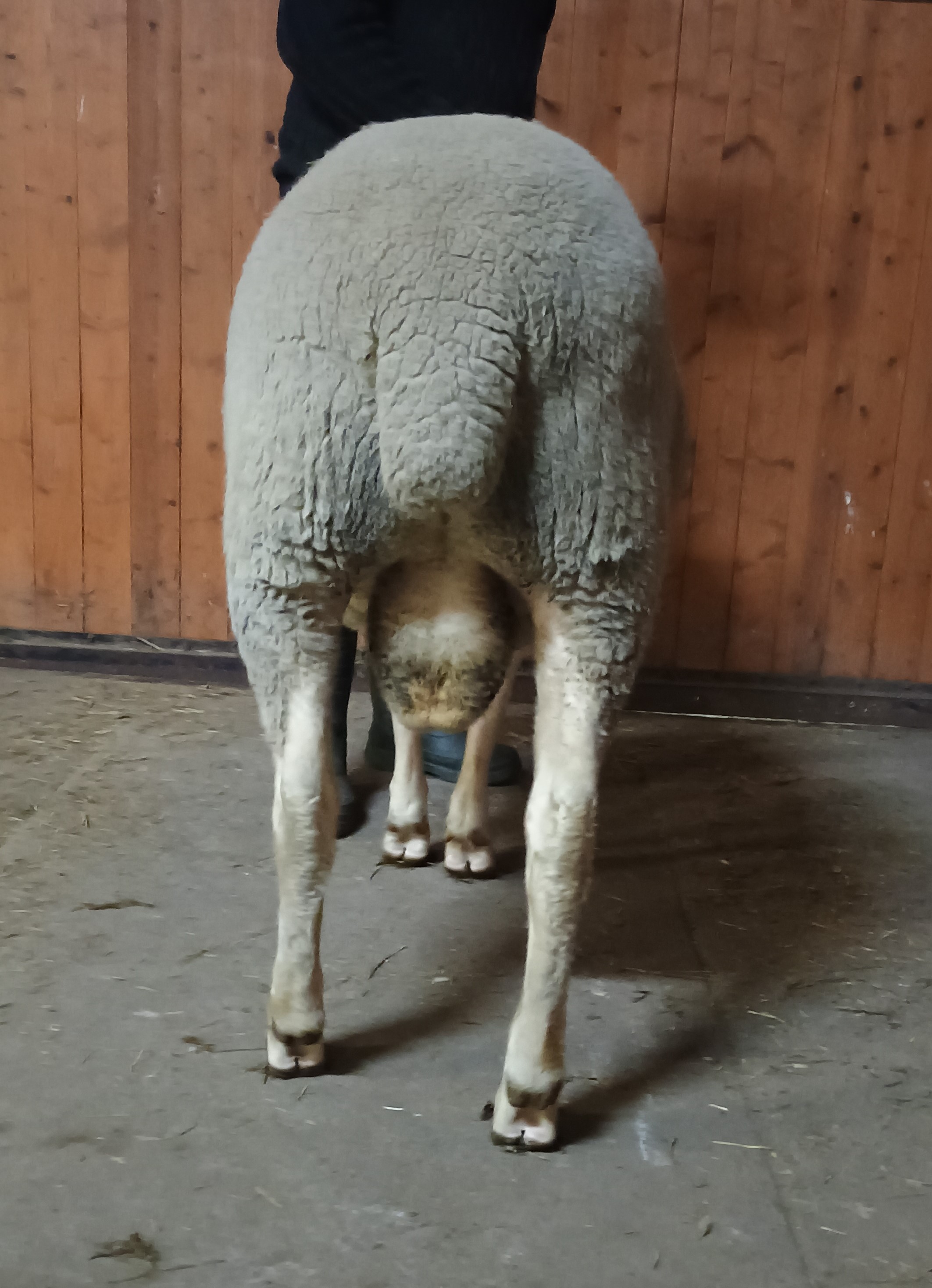 geboren: 14.10.2024, Zwilling, Rasse MLS, M-Linie, Vater: DE 01 15 005 52216 SA-RF, mit 97 Tagen 54,0 kg gewogen, tgl. Zunahme 515 g, Körung mit 133,0 kg, WBE 8/8/8, ARR/ARQ